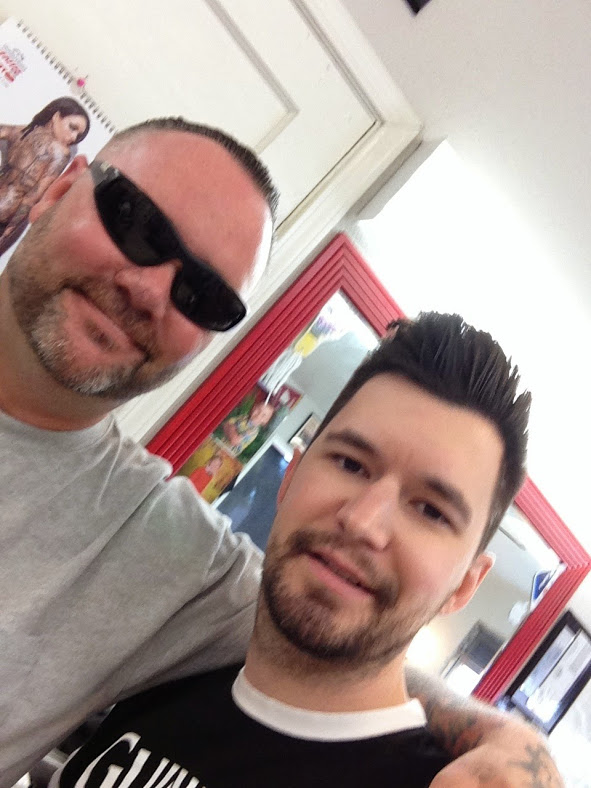 I can't say that my first haircut by Anthony was some memorable experience that expanded my cultural horizons or some shit. It was just a haircut. Nice and simple. BUT... I didn't have to explain to him in great detail about the history of punk rock music, where that came from, the various other sub-genres it spawned, and how the way I wanted my look and my hair was all inspired by that culture. He was a young man with a few tattoos that knew a lot about music scenes and the looks that went with them. I gave him a simple description of what I wanted and he nailed it. He understands that most men hate to be perceived as vain. That vanity makes men feel "sissy", or however you might wanna put it. But Anthony has always made me feel justified about my vanity when it comes to my hair. That distaste of vanity by the way, is in of itself vanity. I want to look cool without looking like I'm trying to be cool. I want to walk out of there getting offers for free blowjobs from cute chubby redheads, not laughed at by a group of Cholos. I learned after my first cut by Anthony that he gets it. I was relieved to have finally found a permanent barber once again. He was my guy. My barber.
